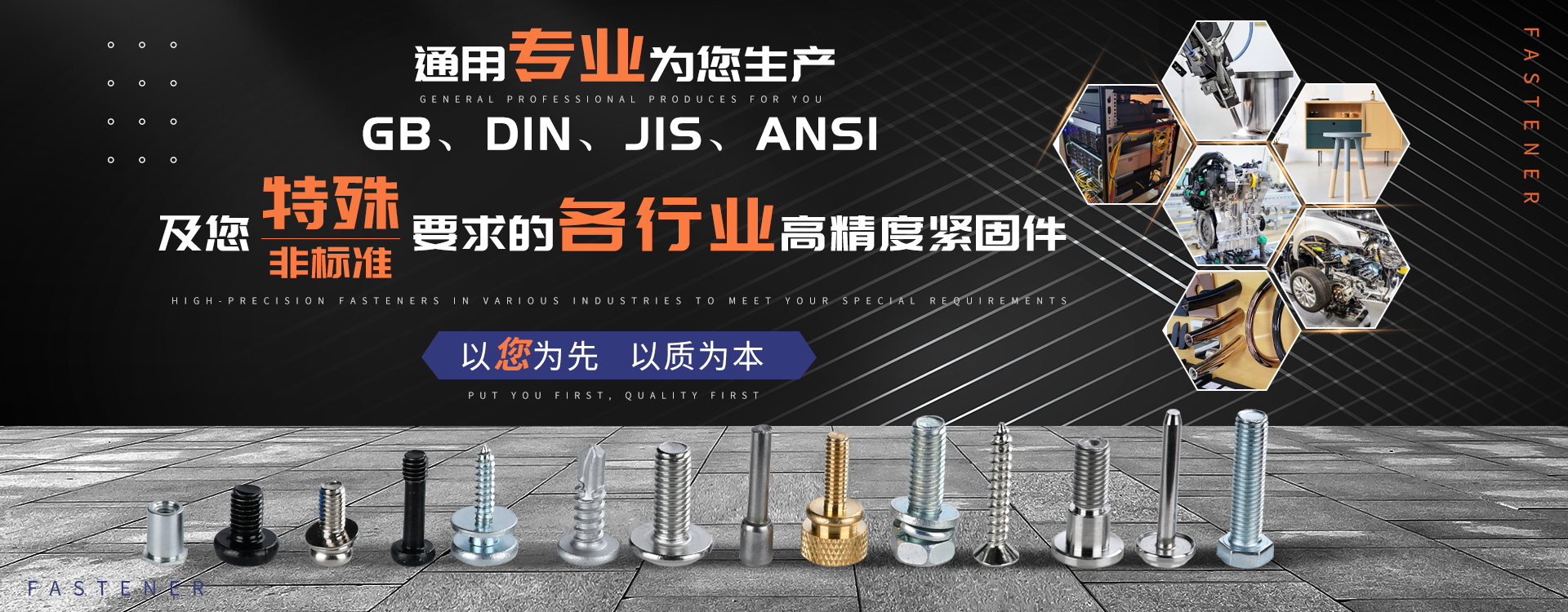 中山市通用螺絲制造有限公司成立于1987年,工廠坐落于廣東四小虎之一的中山市,北連廣州,毗鄰港澳。總占地面積14000m 2,足有兩個足球場。我司于1998年通過德國萊茵TUV ISO9002認證,于2002年通過TUV ISO9001:2000認證。2008年通過ISO 14000認證。我司主營自攻螺絲、組合螺絲、機械螺絲、防松螺絲等標(biāo)準(zhǔn)和非標(biāo)準(zhǔn)件,我司既可按客戶的要求提交所需的產(chǎn)品,也可以為客戶量身定做所需產(chǎn)品。我司擁有專業(yè)的產(chǎn)品檢測隊伍和投影分析儀、金相、硬度計(韋氏和洛氏)、扭矩力測試計等完善的檢測設(shè)備,為電子、電器、五金塑料、衛(wèi)浴、家具、機械、汽配等行業(yè)提供符合歐盟質(zhì)量、環(huán)保要求的產(chǎn)品。2006年,我司自主開發(fā)的ERP管理系統(tǒng),使我們的生產(chǎn)和服務(wù)效率得到了極大的提高。 經(jīng)過三十多年地摸爬滾打,依靠眾多新老顧客的支持,通用螺絲逐漸成長為國內(nèi)知名的緊固件供應(yīng)商。了解更多 >>